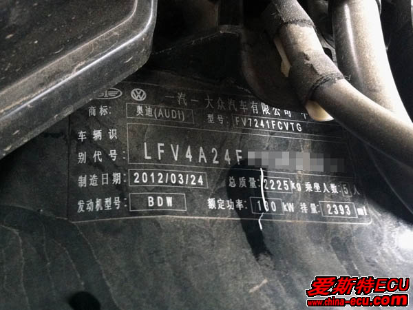 爱斯特ECU的12款奥迪A6L搭载2.4L的可变气门正时、可变进气歧管、多点喷射的发动机,配合7速CVT手自一体变速箱,最大功率130KW/177HP,最大扭矩230NM。相比同根同宗的大众系列1.8TSI发动机,在扭矩上还略逊一筹,这也是车主黄先生本次升级爱斯特ECU的一个主要原因。
