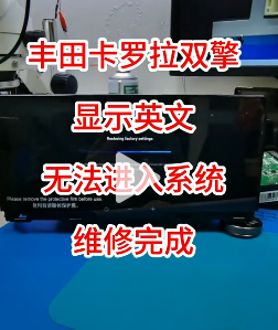 丰田卡罗拉双擎中控主机开机显示“Restoring factory settings”,无法进入系统