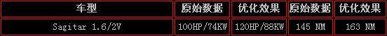 升级数据:120HP/88KW,升级扭矩:163NM。