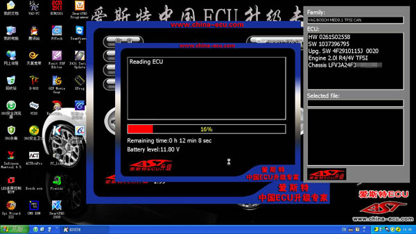 奥迪A6L 2.0TFSI发动机原程序,经过打包整理后发送到德国ECU电脑程序商,由专业的发动机ECU软件工程师,根据其发动机参数及MAP曲线,有针对性的进行ECU升级调校。